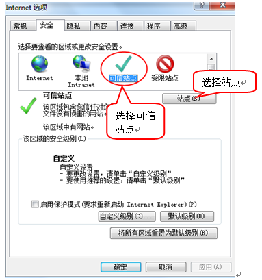 該頁(yè)面主要是進(jìn)行可信任站點(diǎn)的設(shè)置。