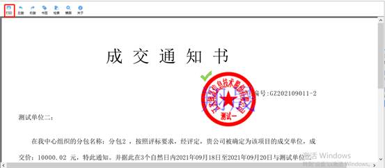 2、打印招標(biāo)結(jié)果通知書(shū)頁(yè)面,可以查看并打印通知書(shū),如下圖: