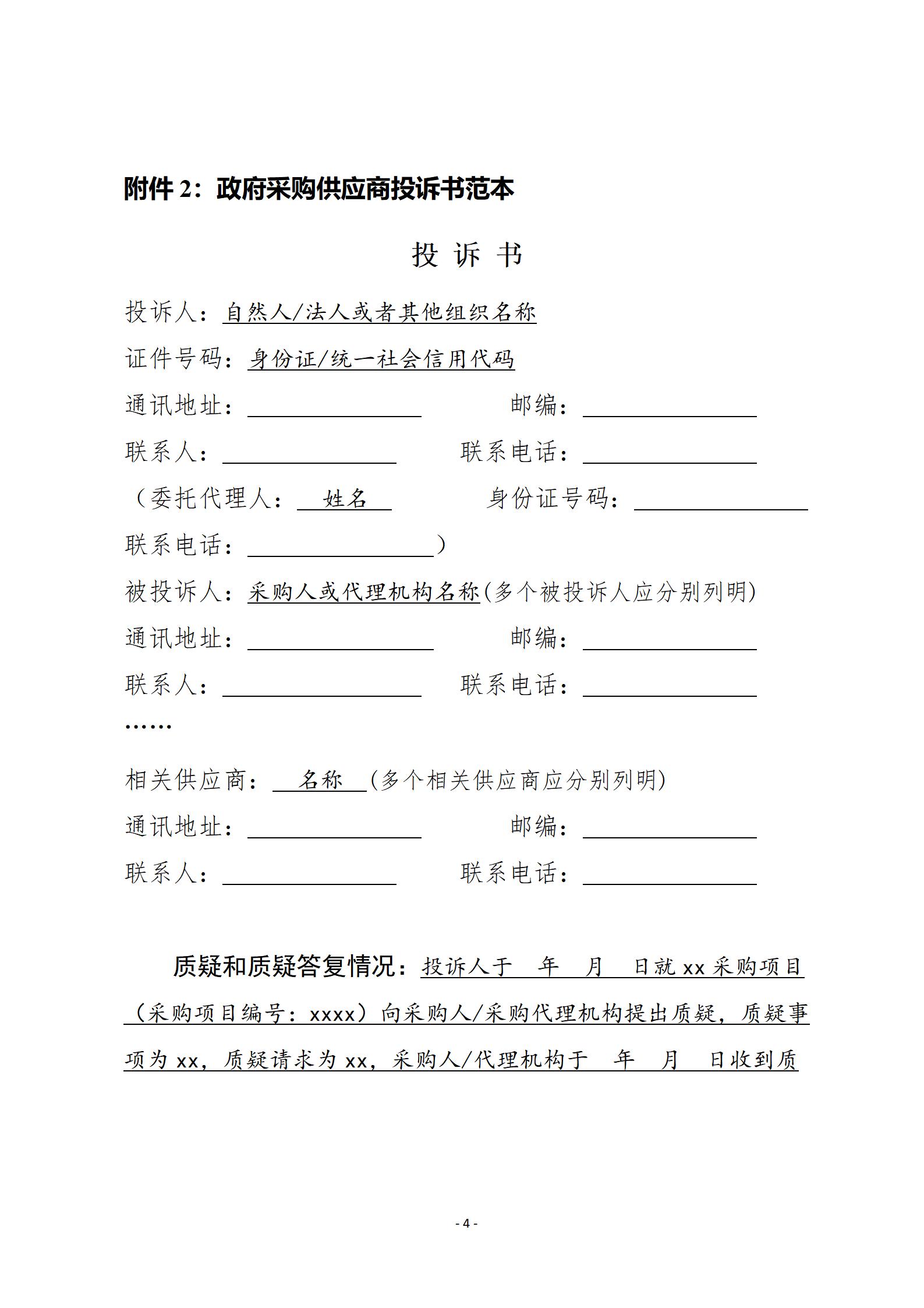 政府采購(gòu)供應(yīng)商投訴書范本.doc