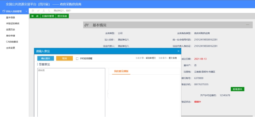 3、完成后點(diǎn)擊“下一步”,進(jìn)入頁(yè)面最后點(diǎn)擊“提交信息”,等省交易中心審核通過(guò)后即可:
