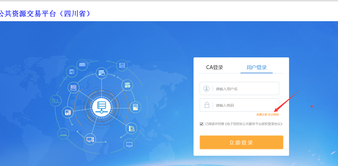 1、請訪問地址:http://ggzyjy.sc.gov.cn/PSPSSO/login/oauth2login,登錄四川省統(tǒng)一認(rèn)證平臺,點擊登錄頁面【忘記密碼】按鈕。