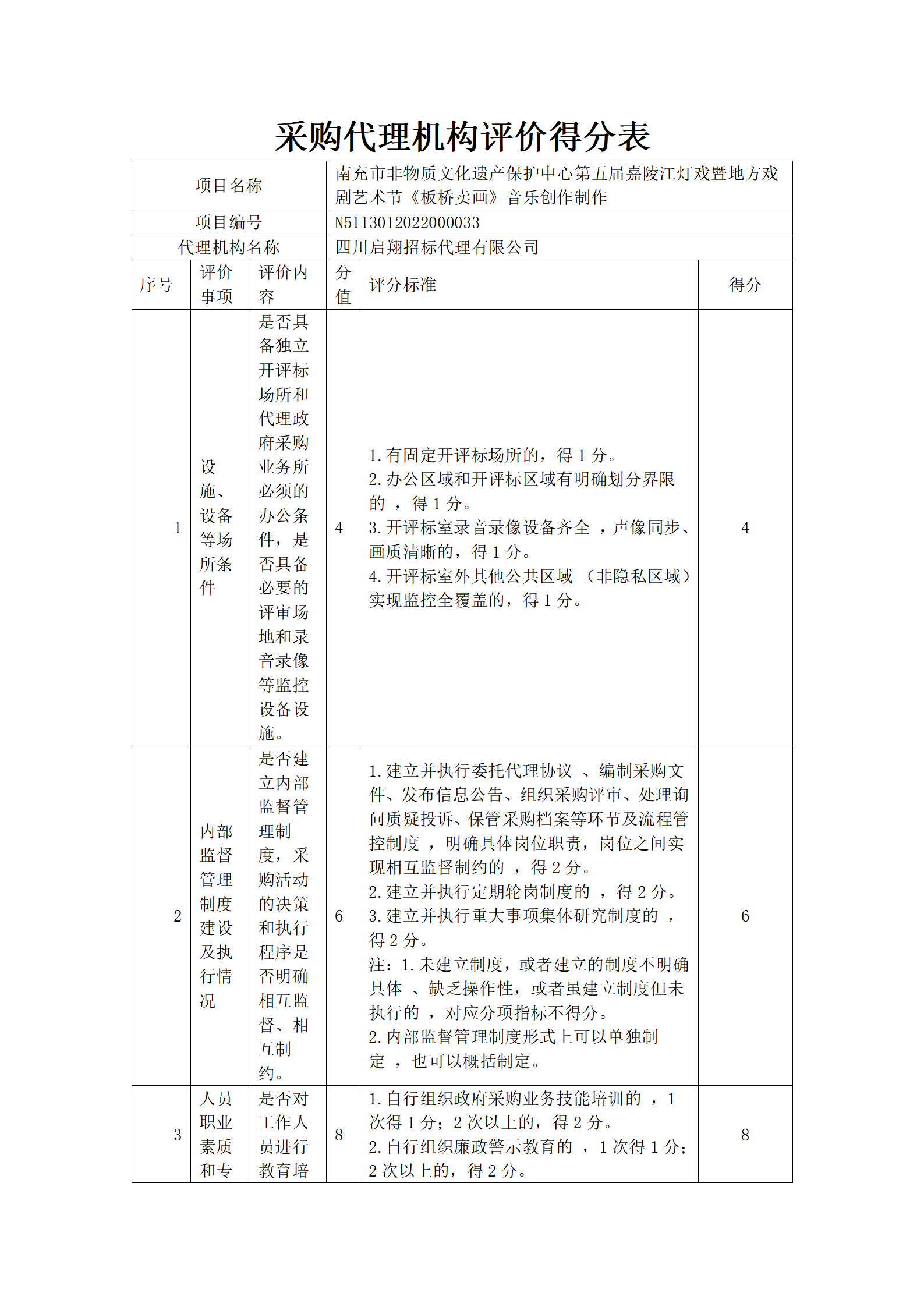南充市非物質(zhì)文化遺產(chǎn)保護中心第五屆嘉陵江燈戲暨地方戲劇藝術(shù)節(jié)《板橋賣畫》音樂創(chuàng)作制作采購代理機構(gòu)評價