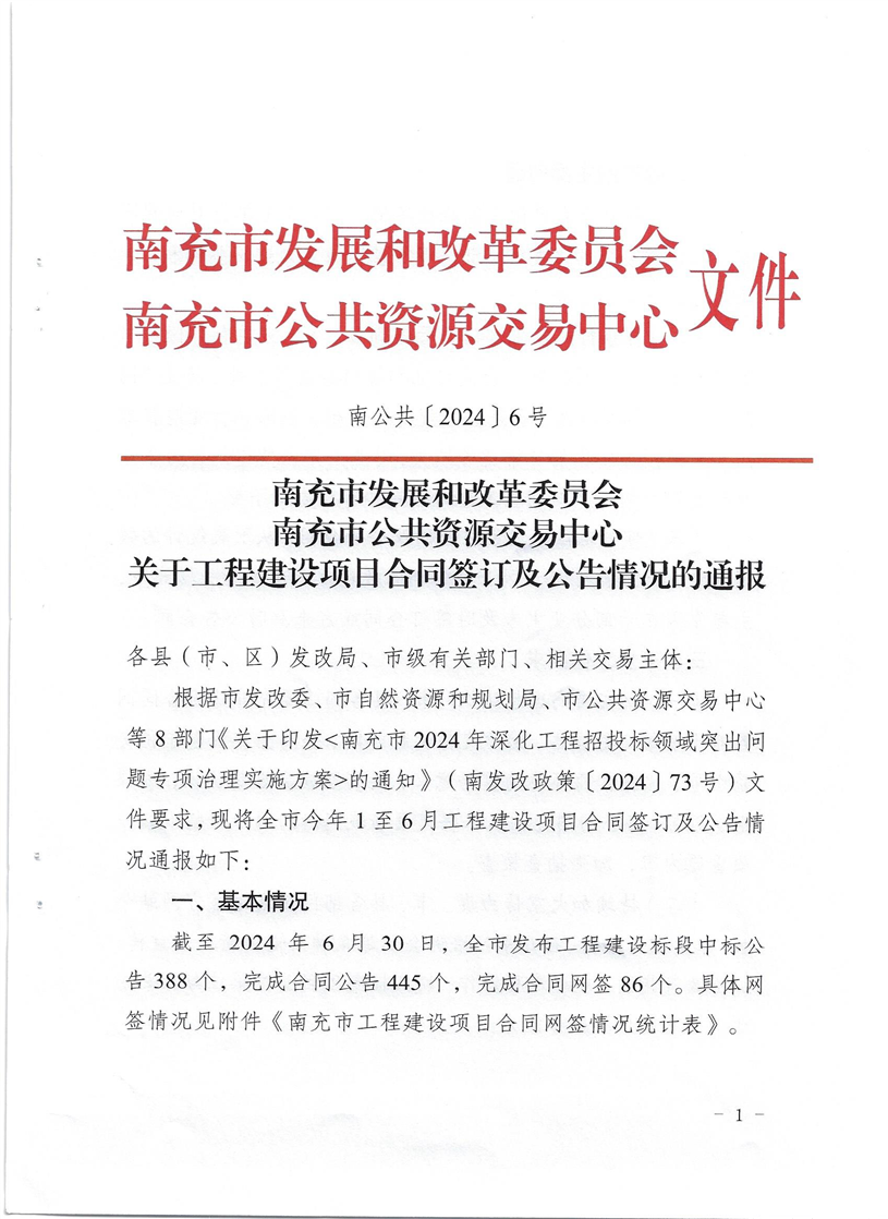 南充市發(fā)展和改革委員會、南充市公共資源交易中心關(guān)于工程建設(shè)項目合同簽訂及公告情況的通報