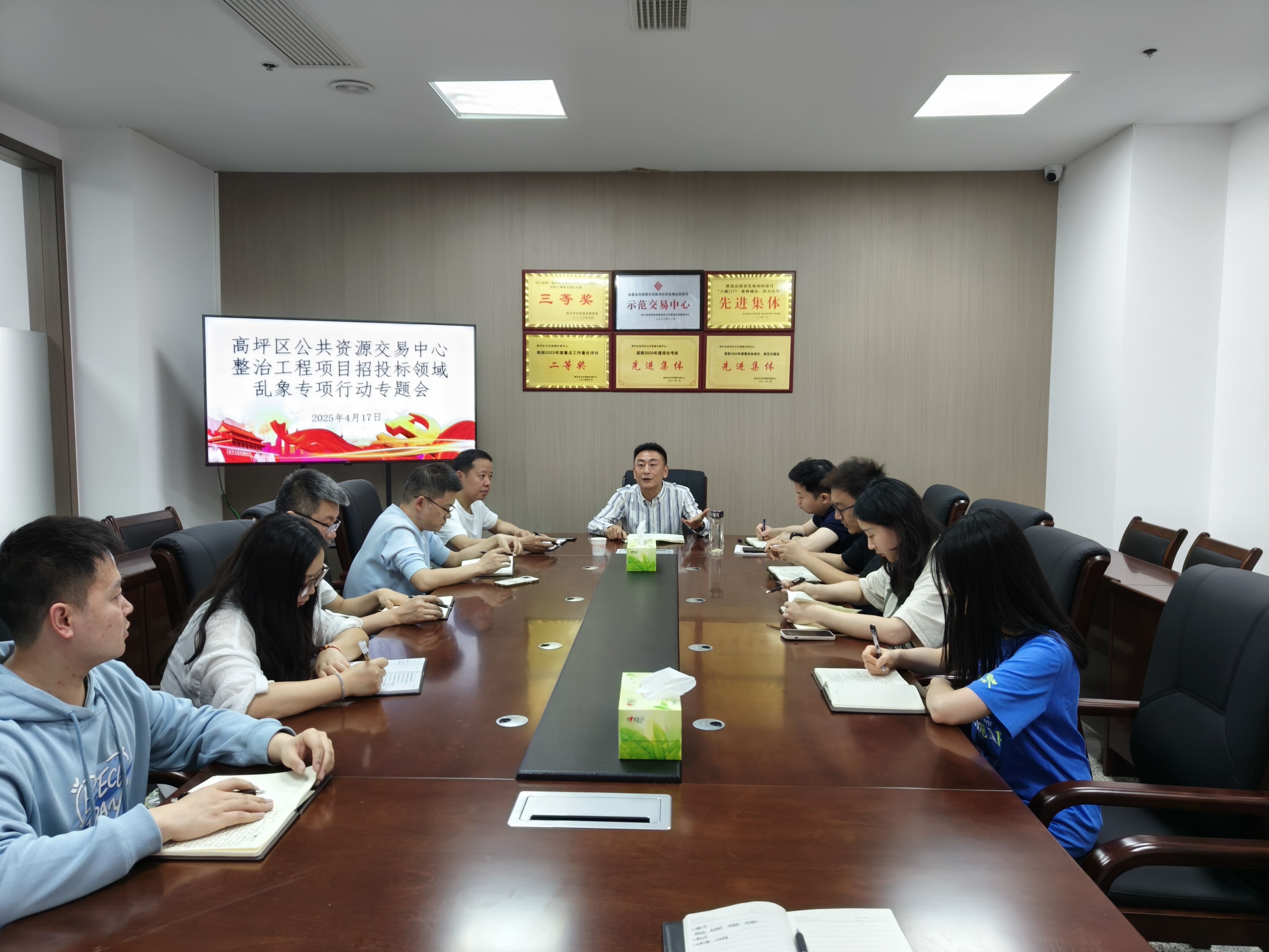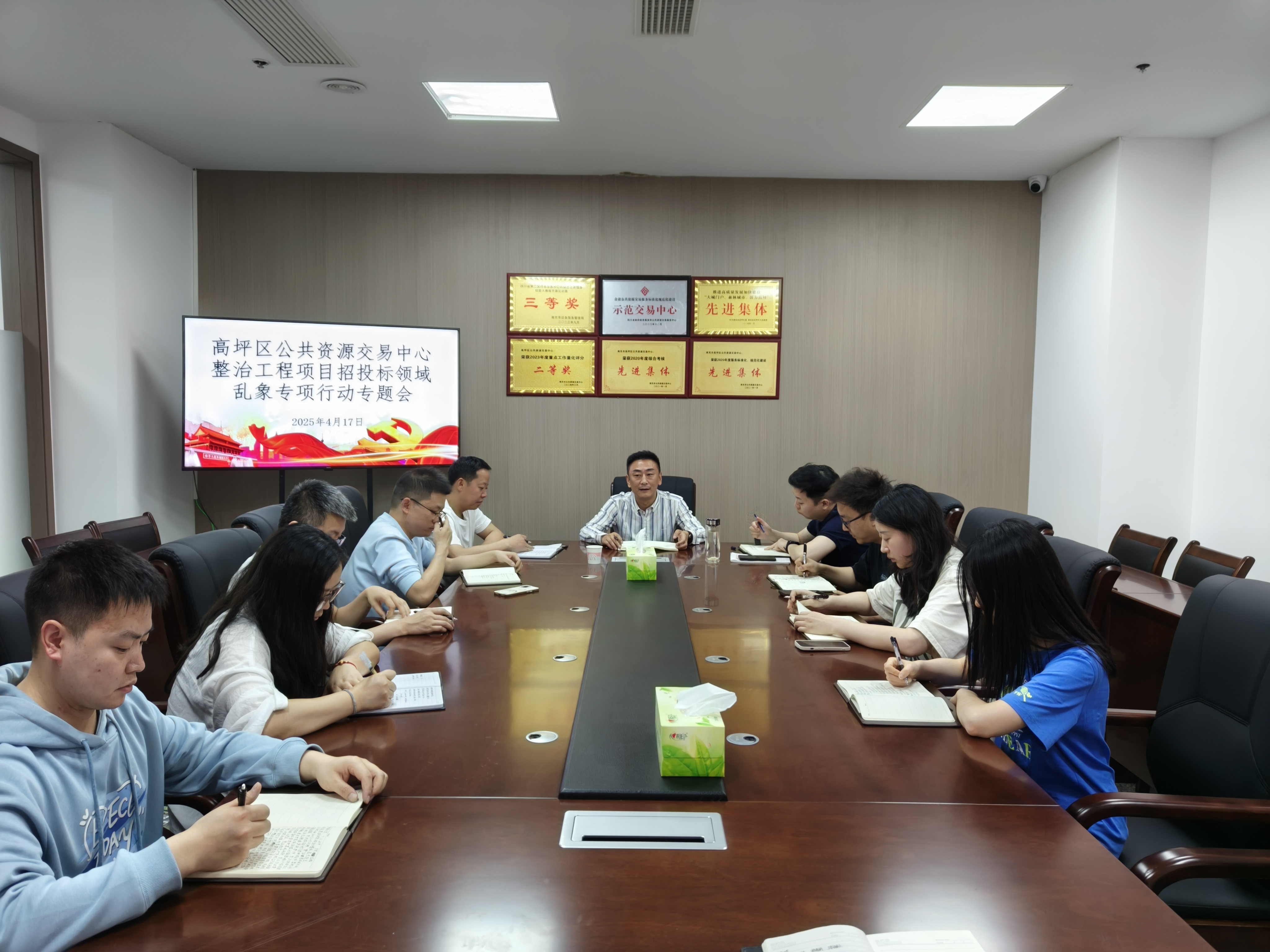 為深入貫徹落實(shí)中央、省市關(guān)于整治招投標(biāo)亂象的重要決策部署,進(jìn)一步規(guī)范招投標(biāo)市場(chǎng)秩序,營(yíng)造公開、公平、公正的公共資源交易環(huán)境,4月17日上午,高坪區(qū)公共資源交易中心召開專題會(huì)議,全面部署工程項(xiàng)目招投標(biāo)亂象整治工作。會(huì)議由交易中心主任何紅兵主持,中心全體干部職工參加了會(huì)議。