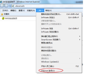 1.打開(kāi)瀏覽器,在“工具”菜單→“Internet選項(xiàng)”