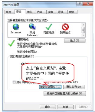 3.點(diǎn)擊綠色的“受信任的站點(diǎn)”的圖片,會(huì)看到如下圖所示的界面: