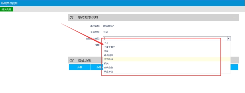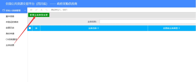 1、點(diǎn)擊主體變更頁(yè)面的“新增主體類型變更”: