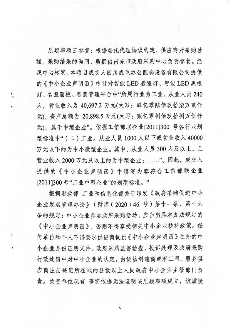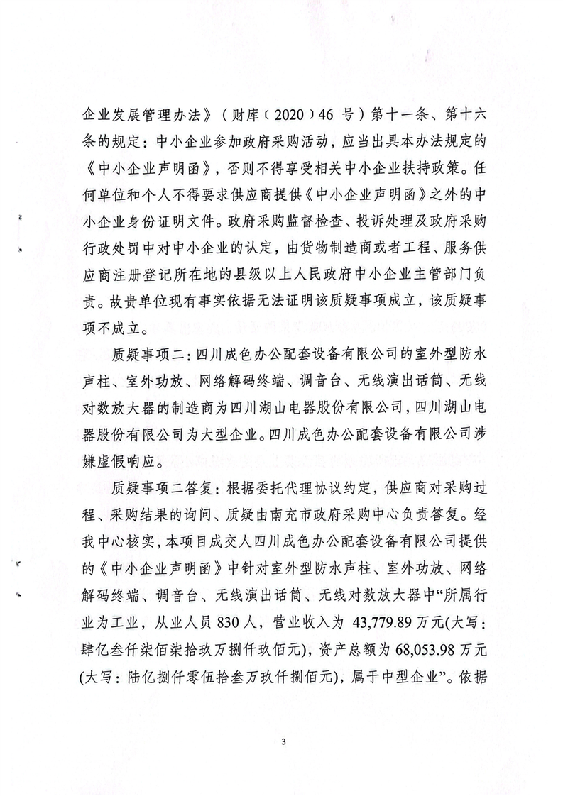南充市政府采購(gòu)中心關(guān)于南充職業(yè)技術(shù)學(xué)院附屬中學(xué)校新校區(qū)教學(xué)設(shè)施設(shè)備采購(gòu)項(xiàng)目的質(zhì)疑答復(fù)
