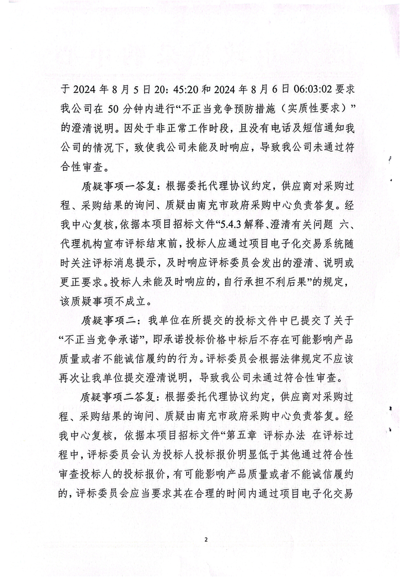 南充市政府采購(gòu)中心關(guān)于四川省南充市自然災(zāi)害應(yīng)急能力提升工程基層防災(zāi)項(xiàng)目的質(zhì)疑答復(fù)