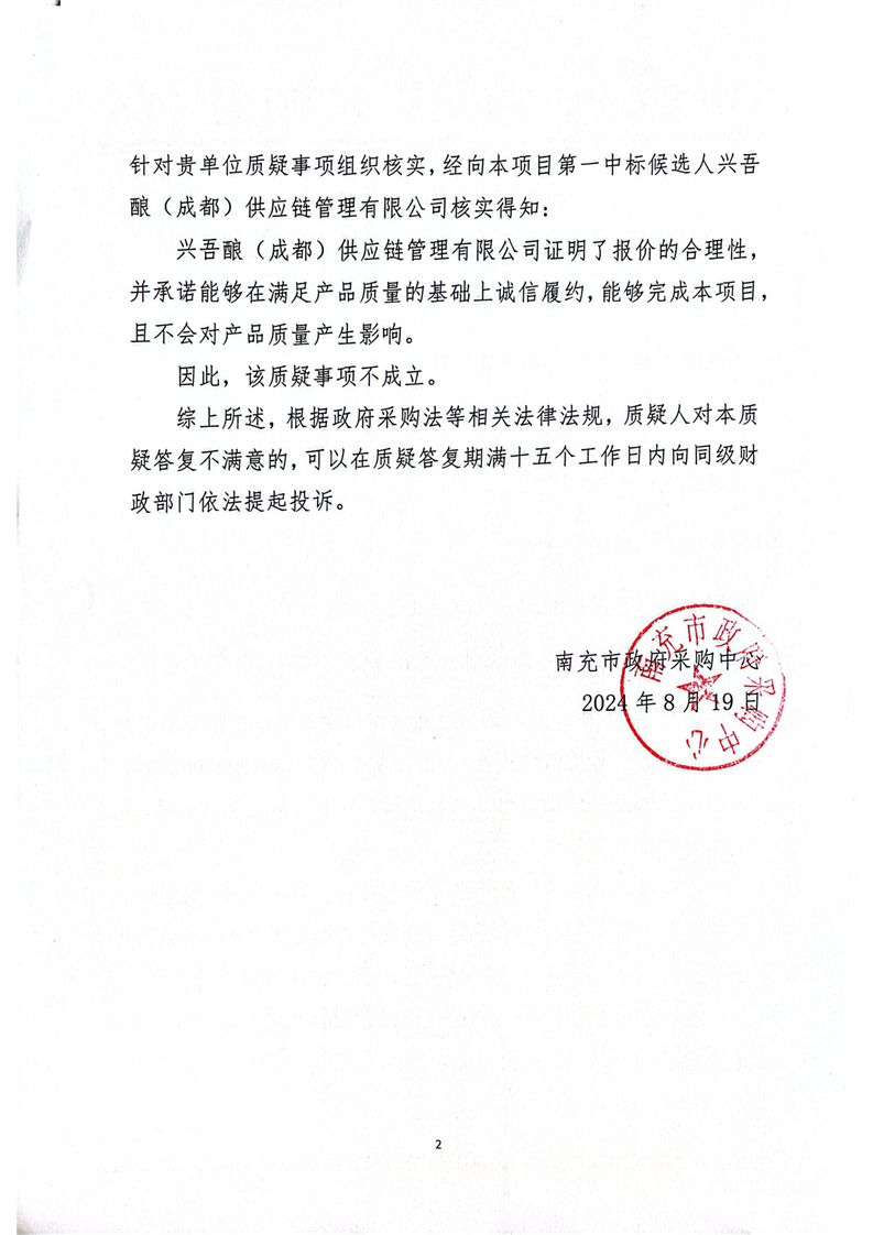 南充市政府采購中心關(guān)于四川省南充市自然災(zāi)害應(yīng)急能力提升工程基層防災(zāi)項目的質(zhì)疑答復(fù)(重慶翥岑商貿(mào)有限公司)