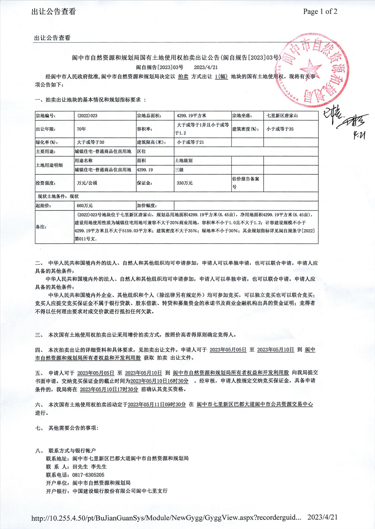 閬中市自然資源和規(guī)劃局國有土地使用權(quán)掛牌出讓公告(閬?zhàn)砸?guī)告[2023]03號)