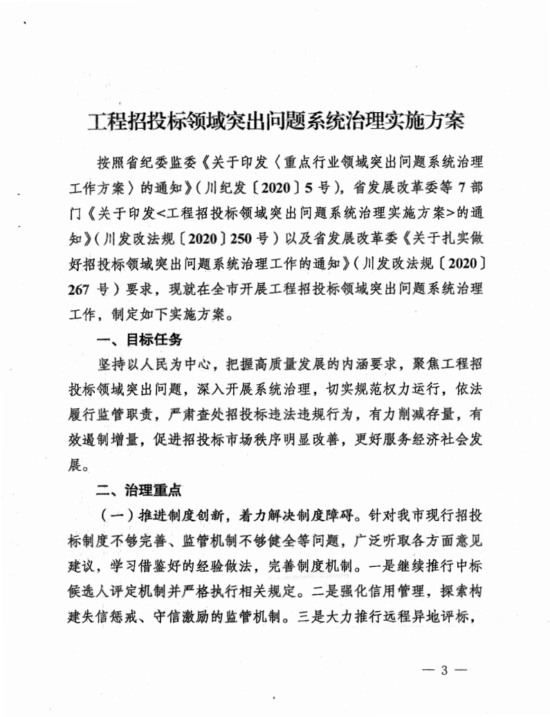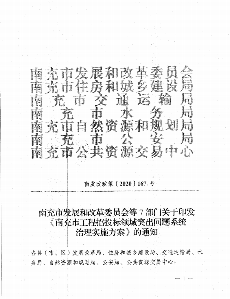 南充市發(fā)展和改革委員會(huì)等7部門(mén)關(guān)于印發(fā)《南充市工程招投標(biāo)領(lǐng)域突出問(wèn)題系統(tǒng)治理實(shí)施方案》的通知